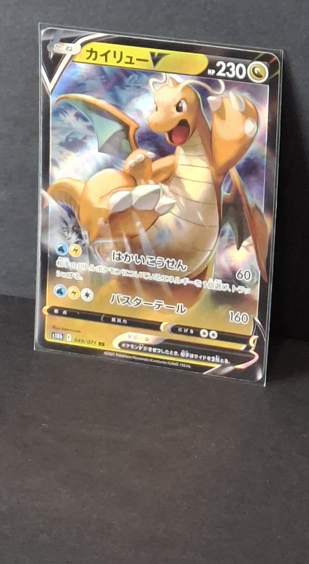 Bring the power of Dragonite to your inventory with this exclusive Japanese holo Dragonite V from the S10b Pokémon GO expansion. Complete with 230 HP, and two impactful attacks—Hyper Beam for disruption and Buster Tail for heavy damage—this card balances gameplay potential with collector-worthy art by kawayoo.