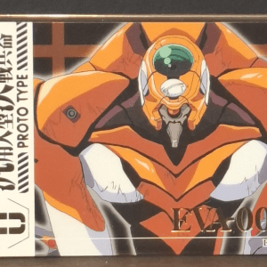 Battle-ready and mysterious, this sealed EVA‑00 Production Model wafer card (card number ER‑04) captures a sleek and technical representation of Evangelion Unit‑00. A great piece for mecha enthusiasts and fans of Evangelion’s darker side.