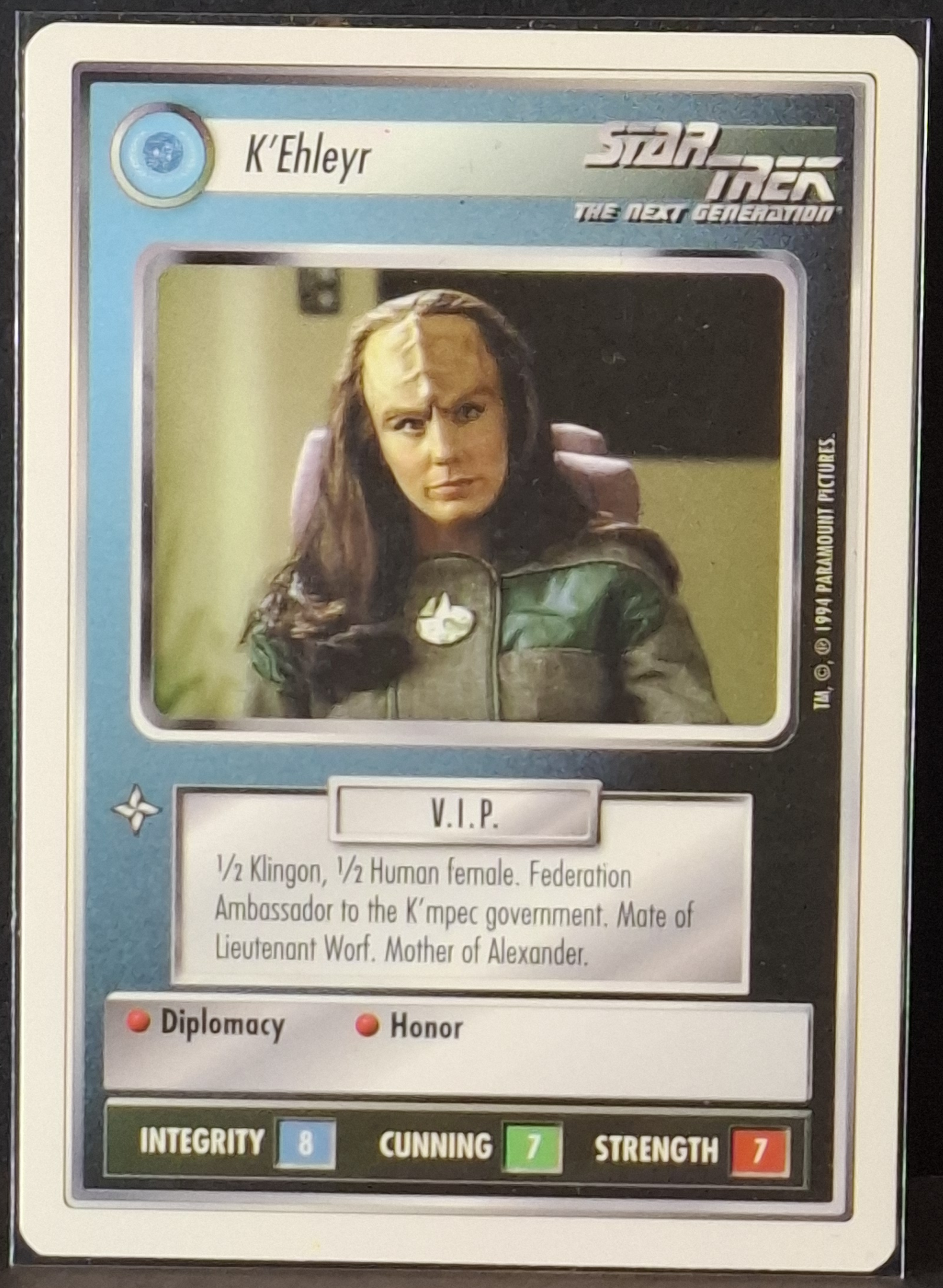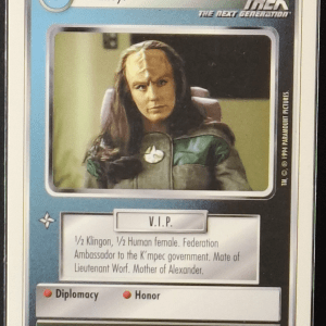 K’Ehleyr white border single card from the 1994 Premiere Unlimited Beta Series. All cards are pack-fresh and directly sleeved unless stated otherwise.