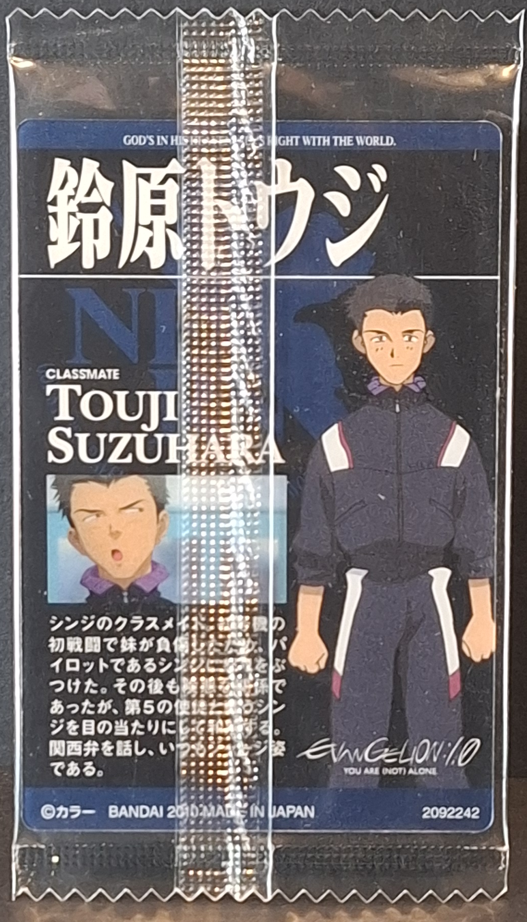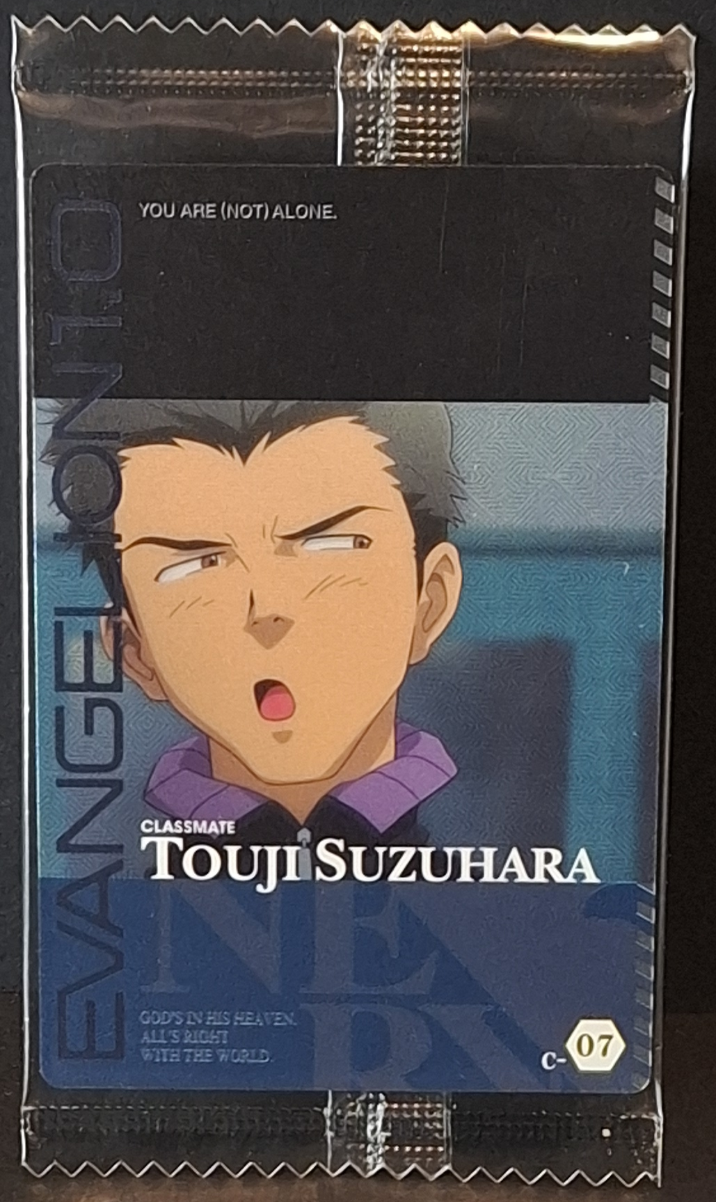 Celebrate a beloved side character from Evangelion: 1.0 You Are (Not) Alone with this sealed Touji Suzuhara “C‑07” wafer card, from Bandai’s promotional wafer series. This card is perfect for collectors who appreciate the supporting cast and the emotional grounding they provide.
