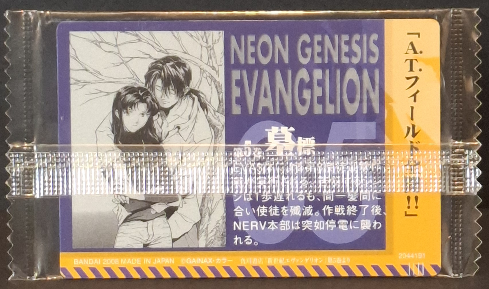 Enhance your Evangelion collection with this factory-sealed I‑05 wafer card, part of the official Volume 5 release of Bandai’s wafer card series.